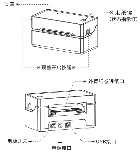 “一”按下打開打印機電源,“0"按下關閉打印機電源;