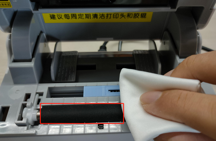c.清理膠輥上的標簽殘留,使用棉布蘸酒精清洗膠輥表面;