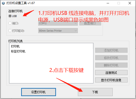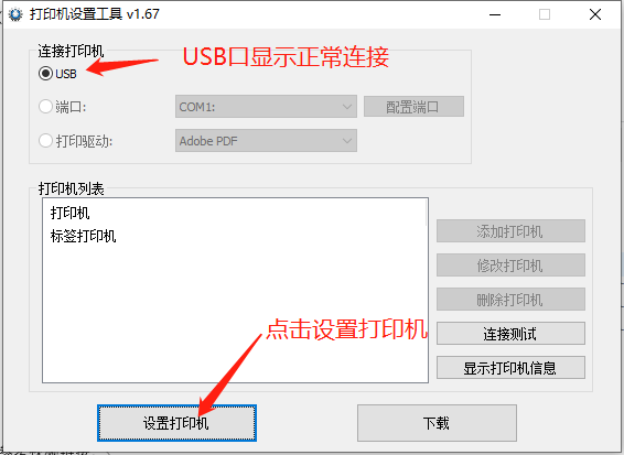 C. USB 口顯示正常連接之后,點擊設置打印機