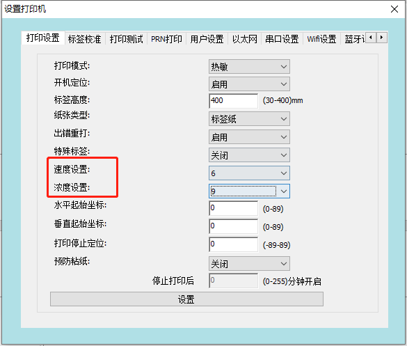 步驟:按上面的連接步驟,選擇打印設置界面,設置需要修改的速度和濃度,點擊最下方的設置選項即可