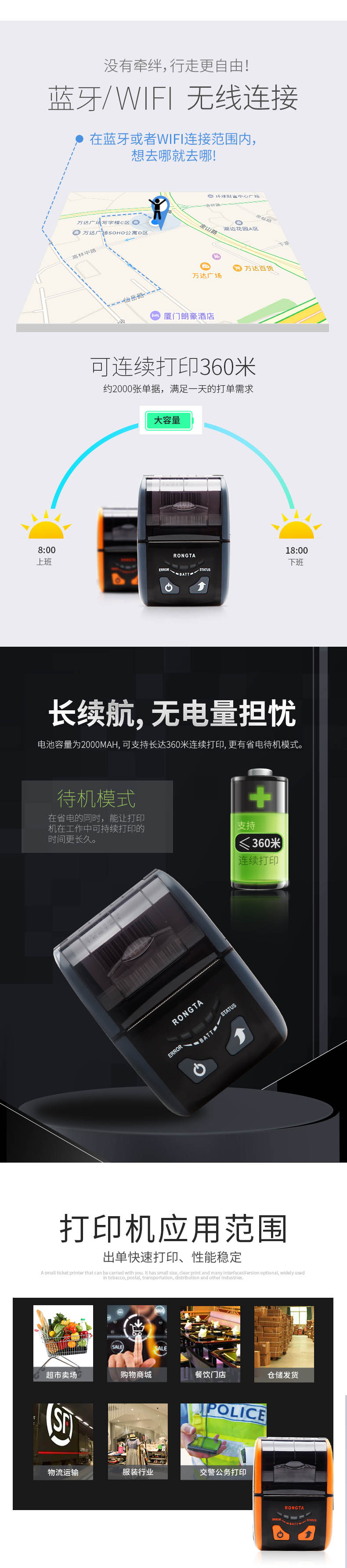 2500mAh超大容量電池超強續航,持久打印無憂 兼容廣泛,多平臺無縫對接 支持多國語言,設置方便易操作