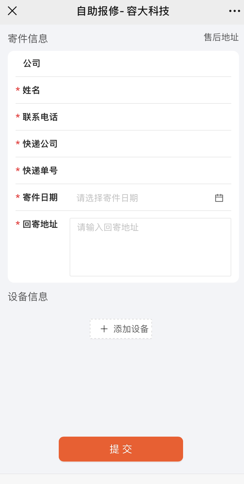 大家好!為了提升容大產(chǎn)品報(bào)修效率,方便客戶查詢維修狀態(tài),即日起容大科技正式推出售后自助報(bào)修平臺。您可以通過以下兩種途徑輕松完成設(shè)備寄送登記,并實(shí)時查詢設(shè)備維修進(jìn)度及寄回狀態(tài)。
